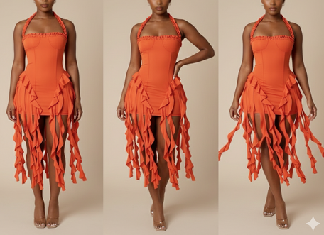 Step into effortless elegance with our most-loved statement pieces. From flowing silhouettes to bold fringe details, each design is created to celebrate confidence, femininity and movement. These looks are made to stand out while still feeling timeless perfect for nights out, special moments or whenever you want to feel your best. Carefully designed to flatter every curve, our popular lookbook brings together softness, strength and modern luxury in one refined collection.